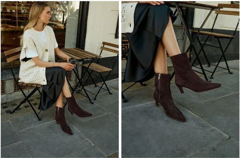 В этом сезоне ботильоны на каблуке-рюмочке стали хитом. Они удобны и подходят для любого случая, визуально удлиняют ноги и придают образу шика, не жертвуя комфортом.