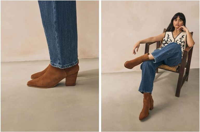 Это харизматичная и универсальная обувь с узнаваемыми деталями — скошенным каблуком, заостренным мысом и свободным голенищем. Она добавит характер даже простому образу.