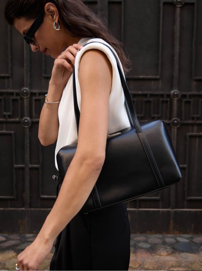 Мягкие или структурные модели вытянутой формы, которые называют багетами — в длину они шире, чем в высоту. Они бывают с короткой и длинной ручкой, чтобы вы могли носить их на плече. Модели в классическом черном варианте и на средней ручке – прямая отсылка к 90-м.