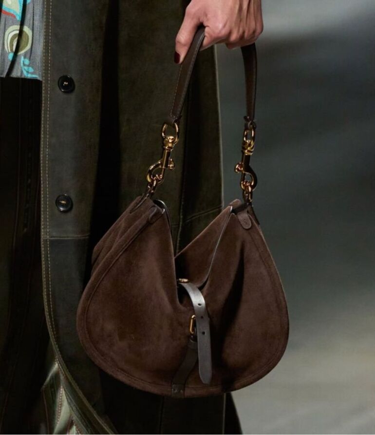 У нее такая мягкая, податливая кожа или замша… Вдохновением для ее создателей стала эпоха 2000-х, поэтому, как и 20 лет назад, ее можно носить под мышкой или небрежно перекинуть через плечо.