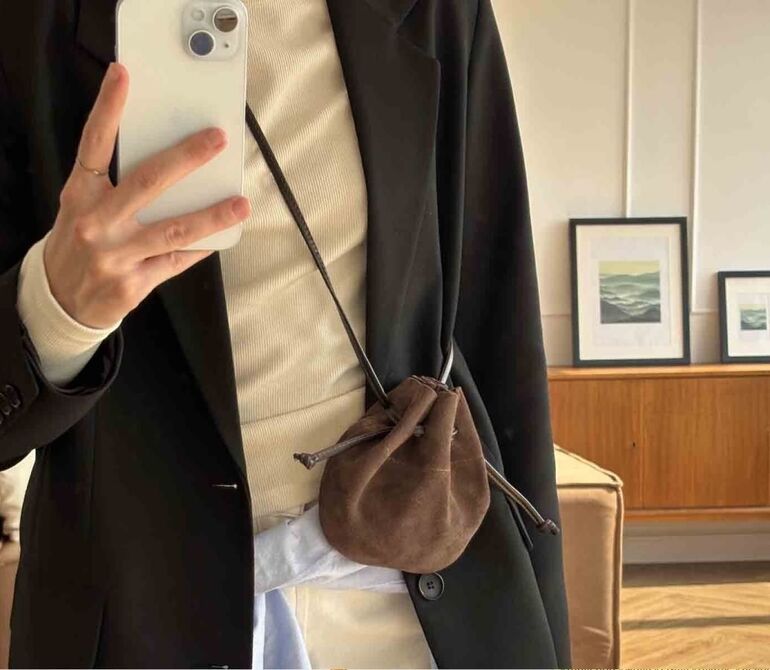 Это отличный вариант, если вам нужна кросс-боди, чтобы освободить руки. Модель в виде мешочка была особенно актуальна летом, но ее уверенно можно носить и с тренчем, и с объемной паркой в осенних образах.