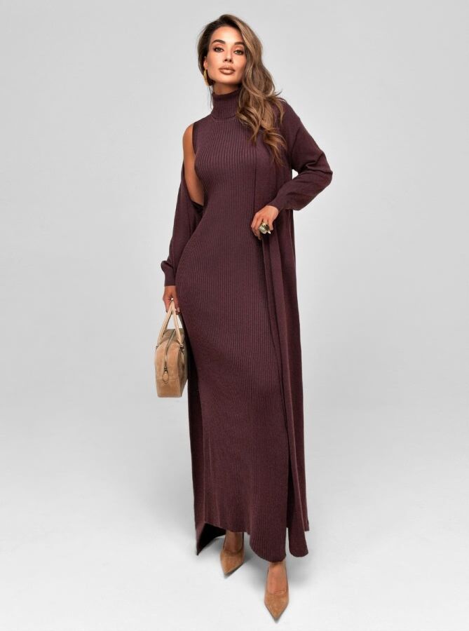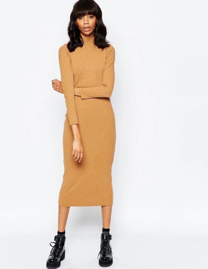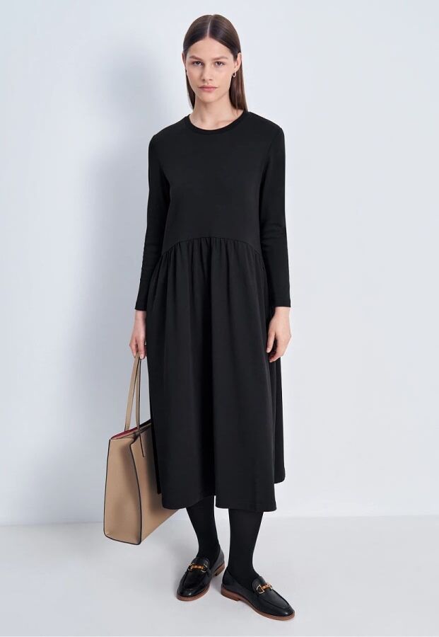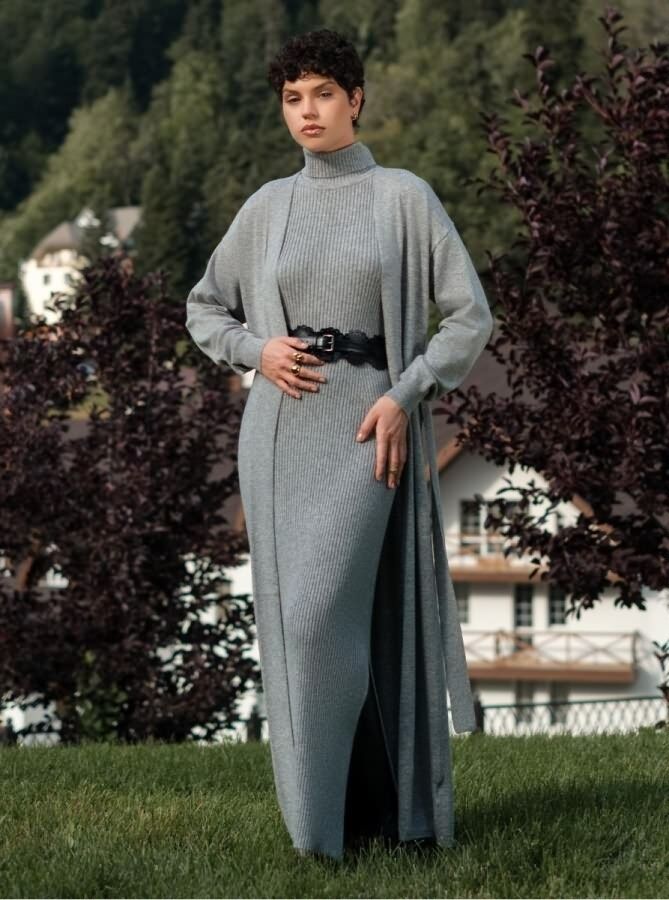 Круглый вырез и боковой разрез от середины бедра позволят комфортно передвигаться по городу и носить с платьем другие контрастные слои одежды.