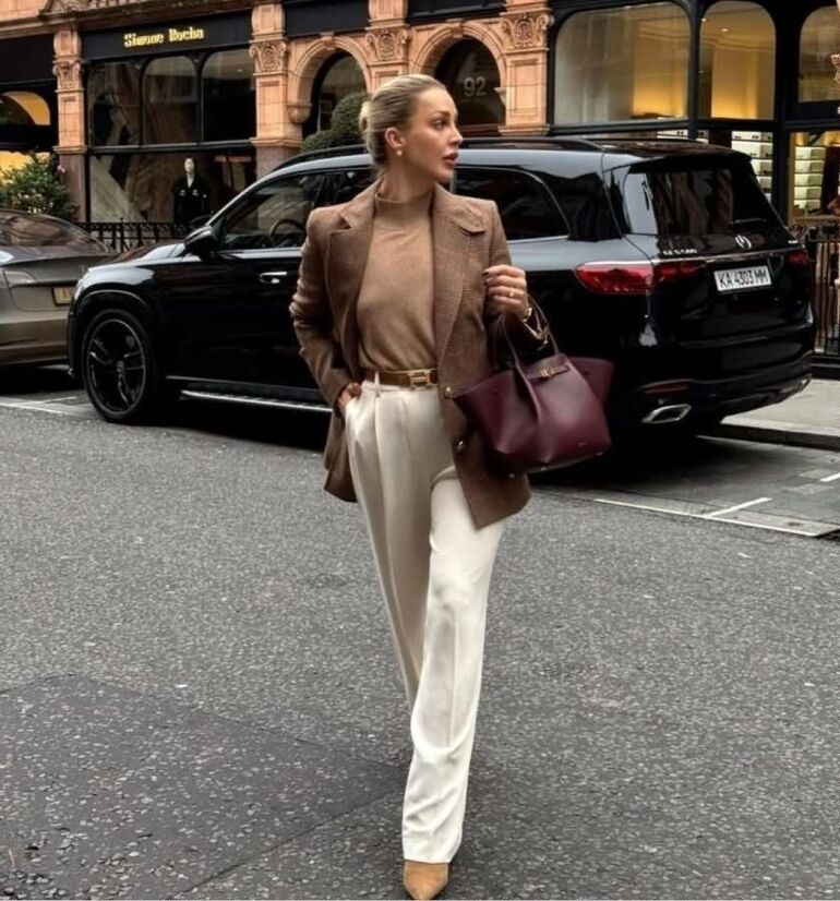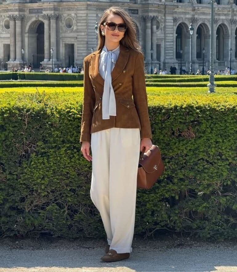 Никакого смешения стилей — предпочтение нужно отдавать классике. В образе в стиле оld money важна ткань — она обязательно должна быть качественной. Твид, кашемир, шерсть и шелк — идеальные варианты.