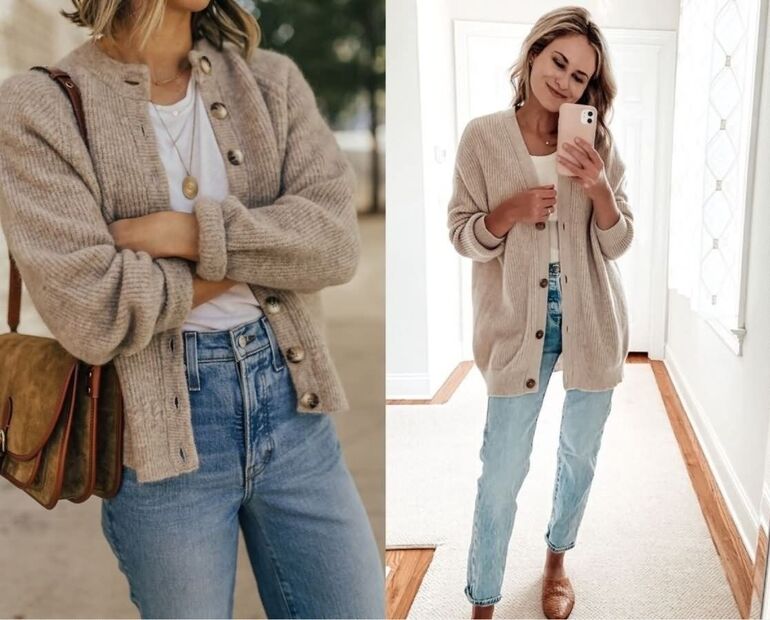 Свитера, джемпера, водолазки и кардиганы – самые необходимые в осеннем гардеробе. Если хотите поддержать стиль Old Money, выбирайте вещи из кашемира и качественной шерсти. Цвета – белый, черный, серый, синий. Но фаворит на осень – бежево-коричневая гамма.