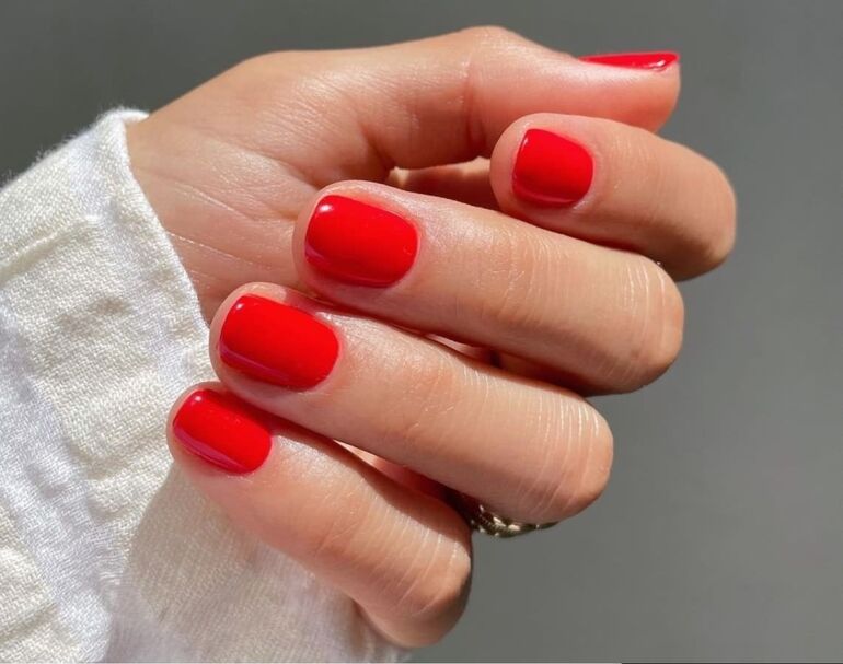 Современный красный маникюр – ультраглянцевое покрытие. Вневременная классика, не теряющая актуальности, которую можно было увидеть на модных подиумах сезона.