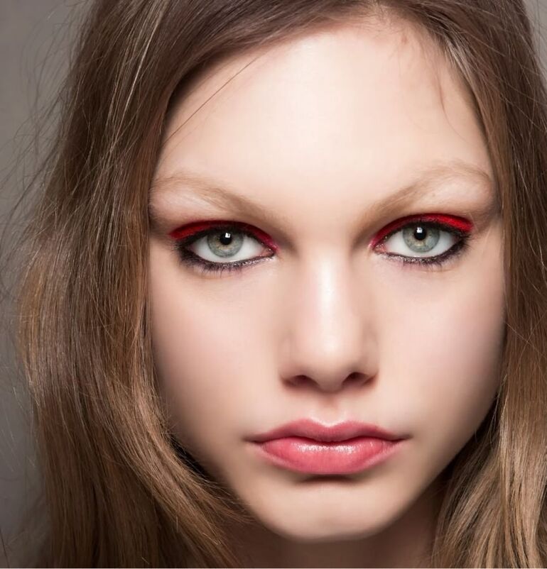 Красную помаду любят далеко не все. Все-таки она слишком привлекает к себе внимание. Да и подходящий оттенок может подобрать не каждая. Но ворваться в тренды можно с помощью красного макияжа глаз. Нарисуйте аккуратную стрелку красным карандашом, растушуйте красные тени в дымку или подведите слизистую.