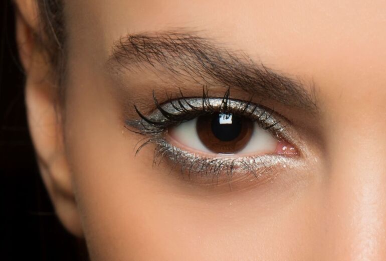 Чтобы тени не скатывались в течение корпоратива, не забудьте предварительно нанести на веки праймер.
