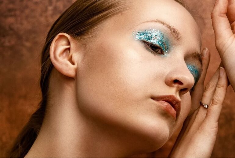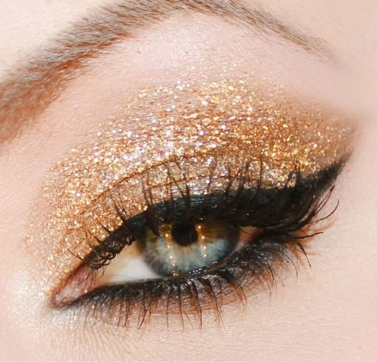 Если корпоратив организуется в конце рабочего дня (так чаще и бывает), у вас нет сил и времени на приведение себя в порядок, блестки – вариант беспроигрышный. Можно нанести блестящие тени, глиттер или рассыпчатый шиммер на веки, чтобы макияж выглядел ярко и празднично. Что хорошо в блестках – необязательно соблюдать аккуратность, как при выполнении смоки, например.