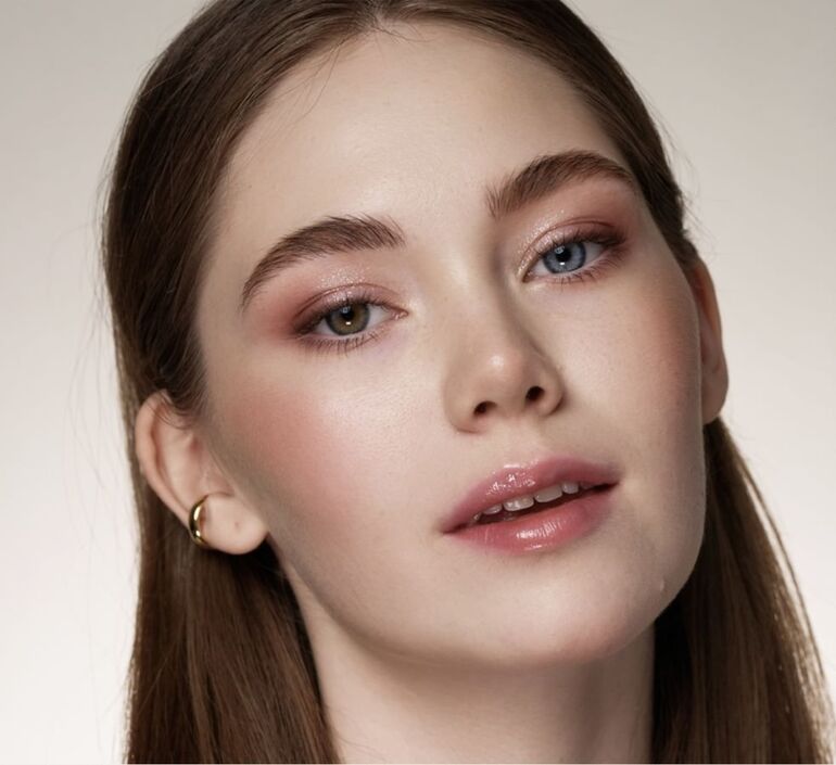 Когда мы гуляем по улице зимой, щеки румянятся, глаза блестят, на ресницах появляется иней, губы становятся красными. Такой же естественный, природный макияж можно сделать самостоятельно. Первым делом необходимо тщательно подготовить кожу: нанесите легкую тональную основу (можно смешать ее с жидким хайлайтером), а затем румяна на скулы и спинку носа. Если не использовали жидкий хайлайтер, добавьте сухой на выступающие зоны. На веки нанесите прозрачные тени с едва заметным шиммером. Губы выделите полупрозрачным ягодным блеском. Ресницы можно накрасить голубой тушью.