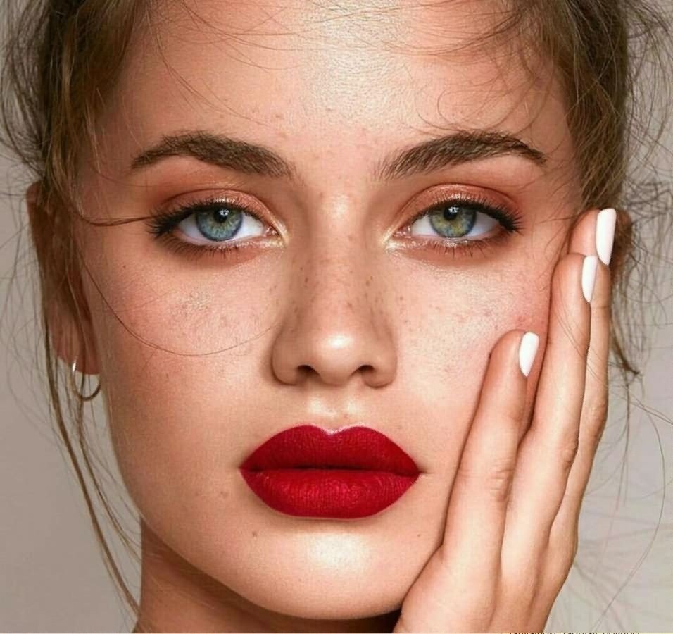 Хотите, чтобы губы стали ярким акцентом? Сочетайте насыщенный красный с ровной, матовой кожей и минимальным макияжем глаз.