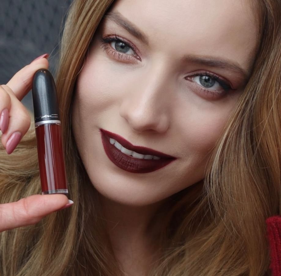 Представьте глубокий винно-коричневый, который обволакивает губы, придавая им одновременно строгую, но притягательную элегантность и нотку загадочной таинственности.