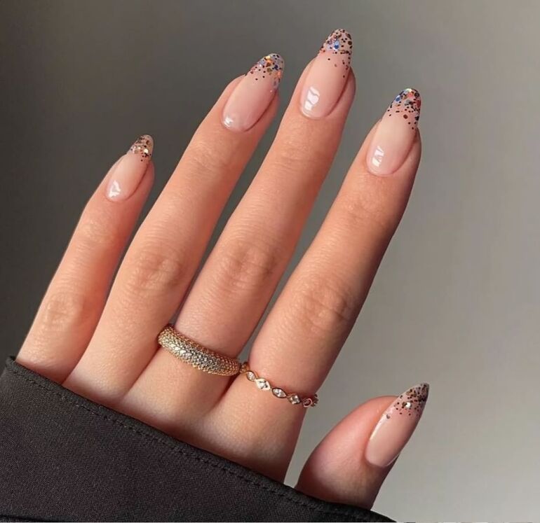 Не любите графический маникюр? Тогда выберите френч в стиле омбре. Цветовая гамма может быть любой — от классического перехода от нюда к белому до экстравагантных вариантов с черным или шиммерными оттенками.