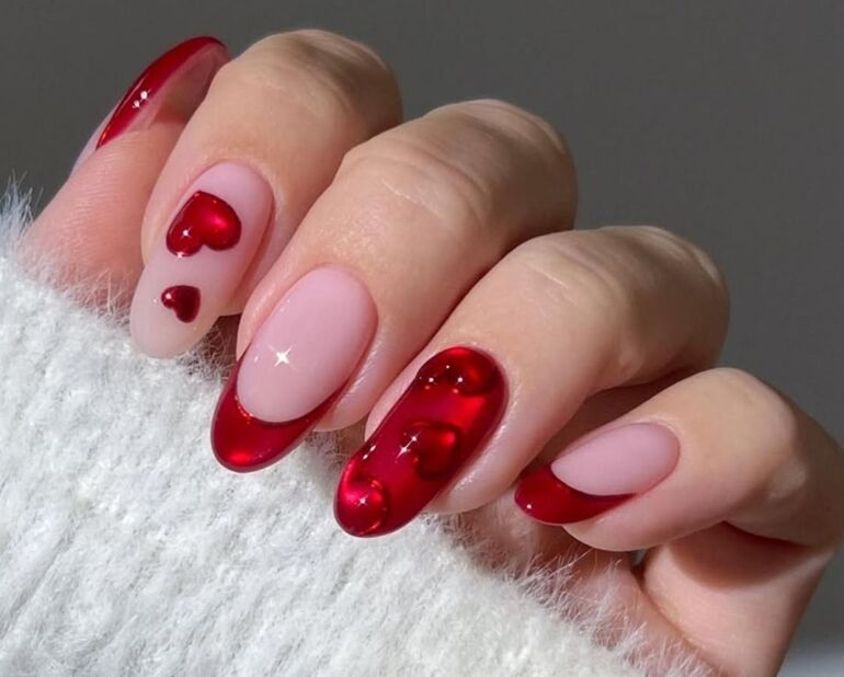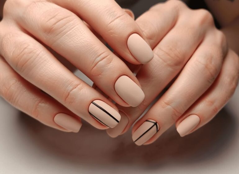 Завершите маникюр покрытием обычным лаком нюдовых или прозрачных оттенков.