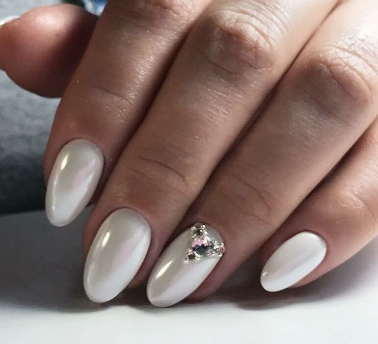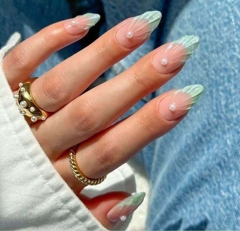 Использование перламутровых лаков для ногтей в комбинации с деликатными пастельными тонами позволяет создать утончённый и изысканный образ. Для дополнительного шарма можно украсить ногти небольшими стразами у основания.