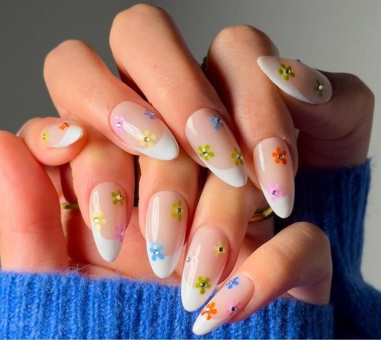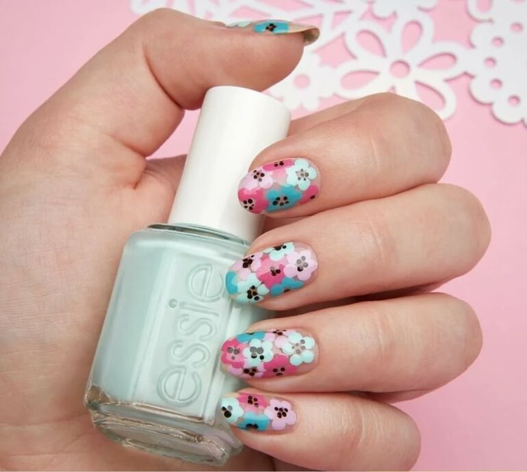 Среди основных трендов в дизайне маникюра этой весной — яркие оттенки с цветочными мотивами, игра на контрасте, а также объемные фигуры.