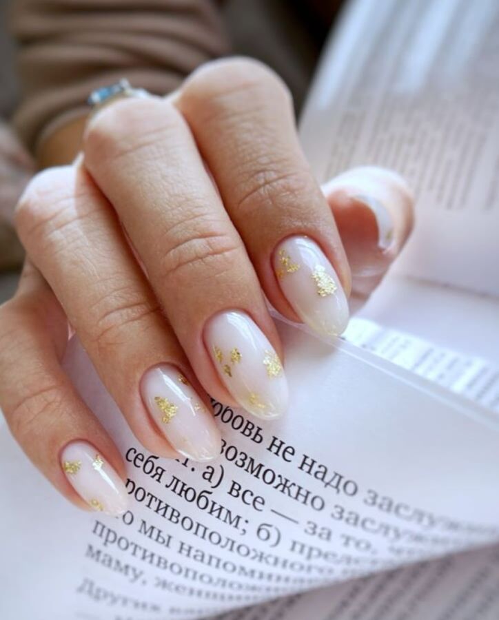 Для создания современного и стильного маникюра используйте золотую фольгу или отдельные полоски на одном или двух ногтях, либо на всех.