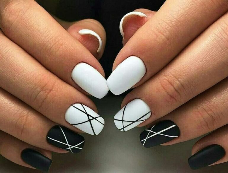 Этот дизайн ногтей можно выполнить как в цветном варианте, так и в монохромном исполнении.