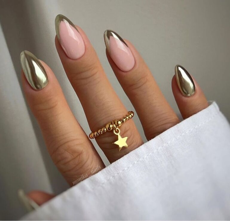 Этот вариант маникюра подходит любителям холодного металлического блеска.