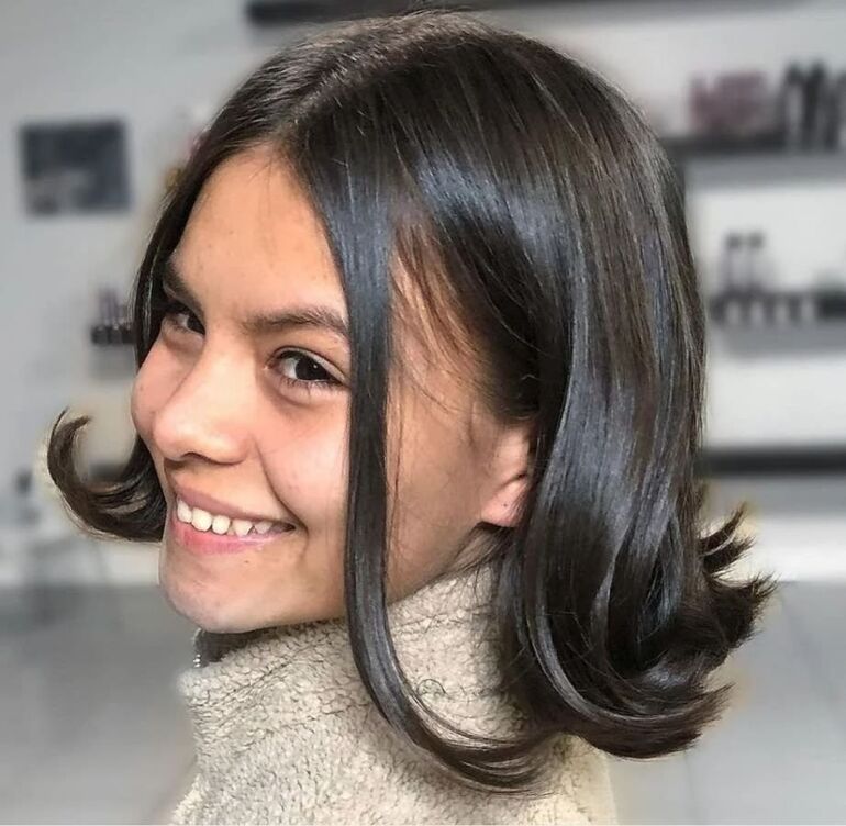 Эта стрижка легко укладывается, и если у вас густые или пушистые волосы, то такая прическа может помочь создать аккуратный образ.
