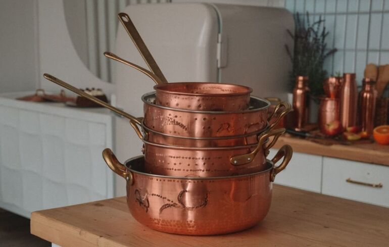 Если на поверхности медной посуды появляется зеленый налет — значит, металл окислился, и эту посуду пора выбросить.