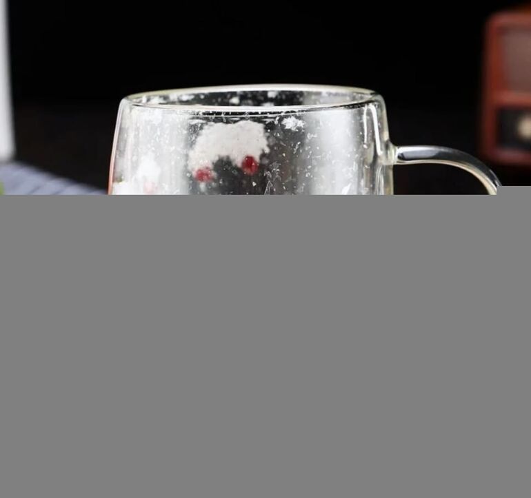 Стаканы и чашки с двойным дном не просто стильные, но и позволяют поддерживать напиток тёплым дольше. Обычно подобные чашки максимально просты, без украшений и декора. Но перед рождественскими праздниками можно потратить немного времени, и найти интересный вариант привычного изделия. Например, декоративные блестки в стеклянном пространстве двойного дна. Переливающиеся частички выглядят празднично и весело.