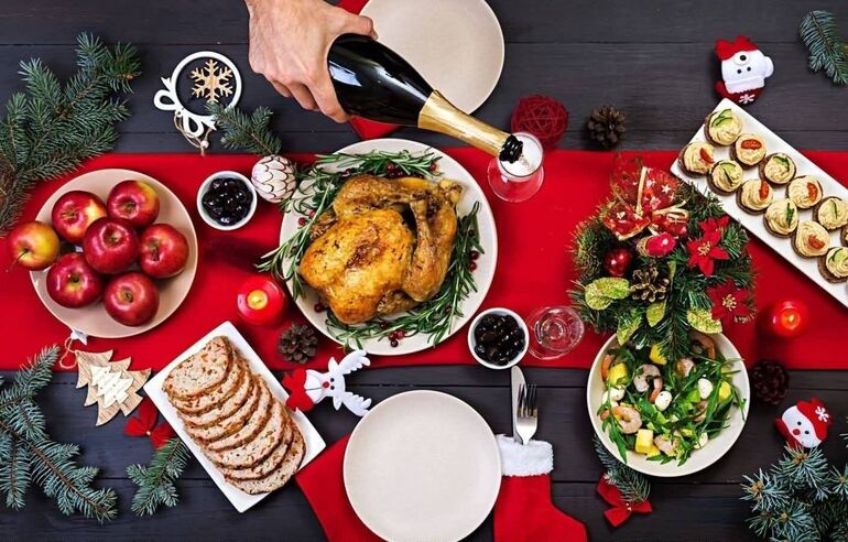 Важная традиция празднования Нового года — это большой праздничный стол с ярким декором и разнообразными вкусными блюдами в меню.