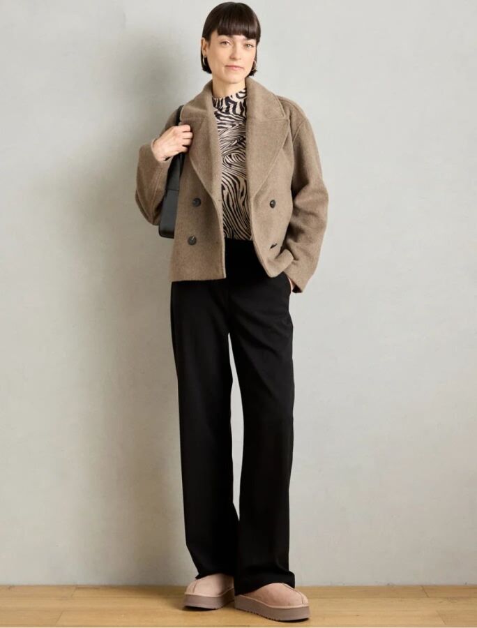 Классические брюки, блузки и пиджаки будут отлично смотреться с аккуратными UGG, не нарушая офисного дресс-кода.