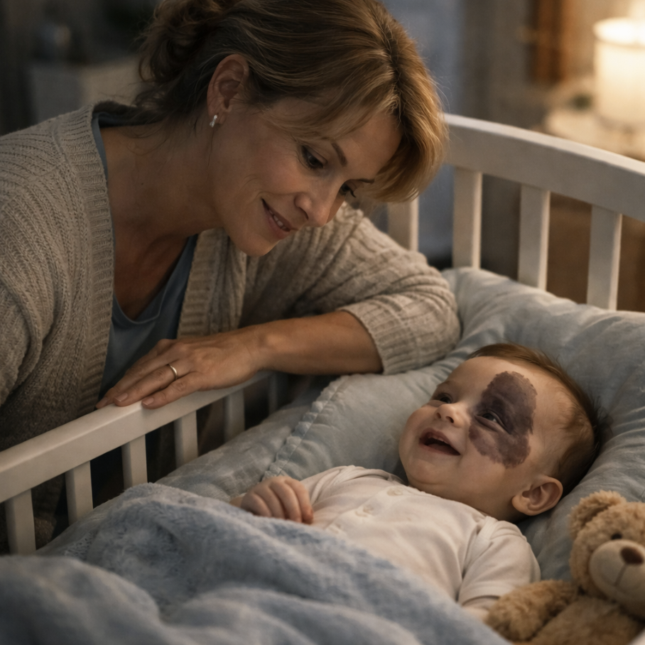 Роды дались тяжело. Когда медсестра поднесла младенца, Валентина увидела лишь одно: крупное тёмное пятно, растянувшееся почти на половину лица новорождённого, захватывая щёку и висок.
