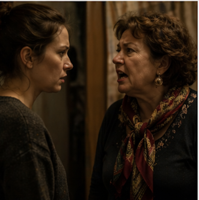 Она стояла на пороге с двумя тяжёлыми сумками. В пальто, с ярким платком и массивными серьгами, которые тянули мочки ушей. Лицо — решительное, как всегда.