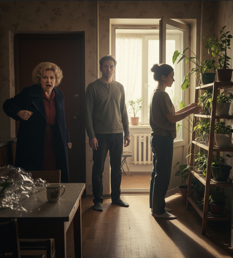 Дмитрий вышел из комнаты, посмотрел на происходящее, пожал плечами и отвернулся. Свекровь продолжила переставлять горшки.