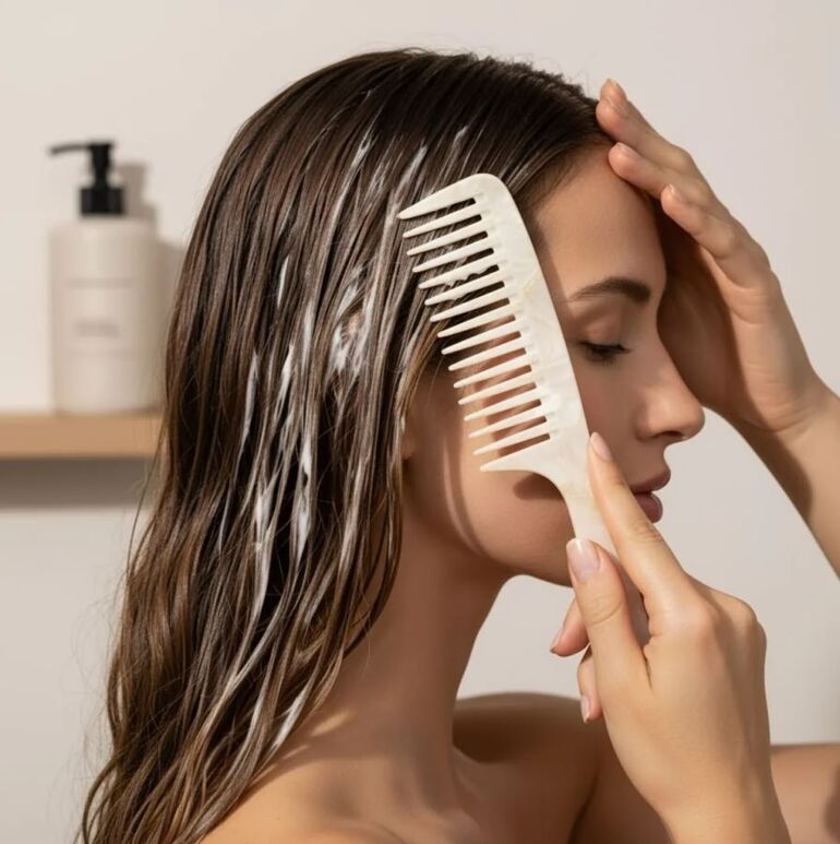 Результат — шелковистые, послушные волосы с ровным цветом и зеркальным блеском.