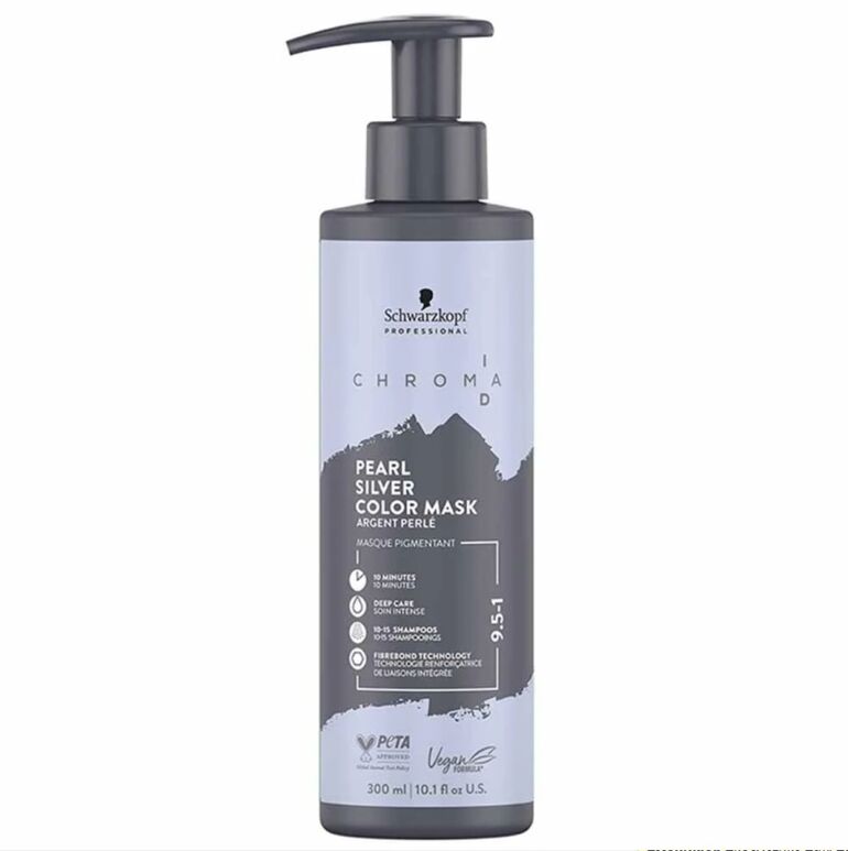 Тонирующая маска бежево-пепельного оттенка работает как soft-focus фильтр для блонда, который приглушает теплые тона и создает благородное сияние.