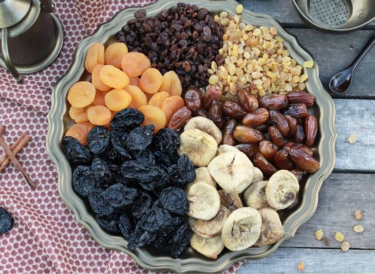 Особое внимание стоит уделить черносливу, финикам и изюму.