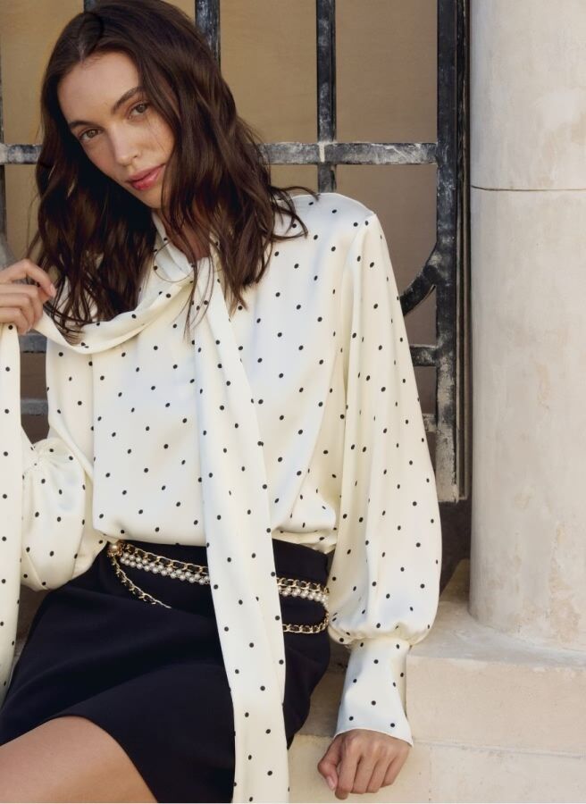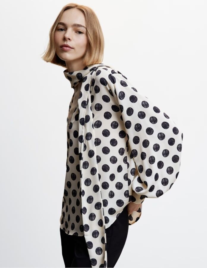 Любой верх в горох можно обыграть «безопасным» черным низом или решиться и надеть, например, белые джинсы и леопардовые ботильоны, а завершить образ яркими шерстяными аксессуарами.