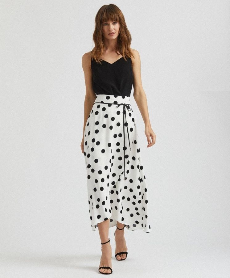 Наряды с принтом в горох весной актуальнее, поскольку черно-белый узор словно создан для школьной формы и у него традиционно романтический подтекст.