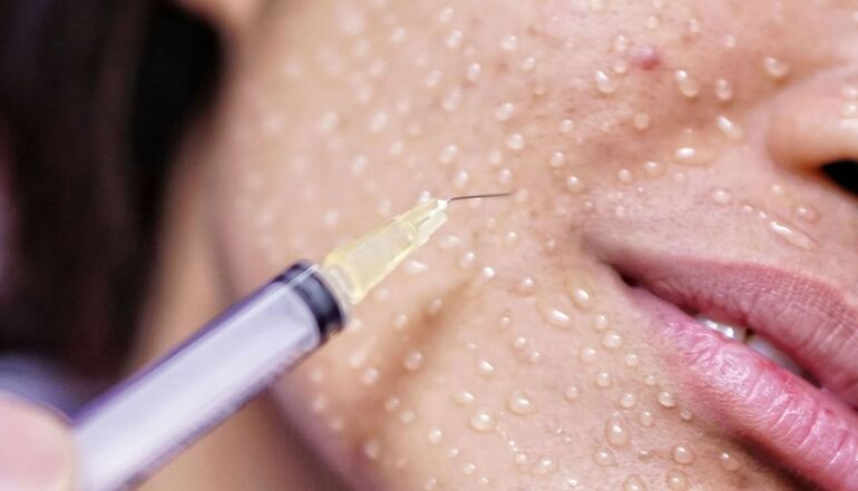 Биоревитализация — это процедура, при которой в кожу вводятся инъекции гиалуроновой кислоты. Она способствует восстановлению поврежденных клеток, стимулирует синтез коллагена и эластина, глубоко увлажняет кожу, уменьшает поры и разглаживает морщины. В результате процедуры заметно улучшается общее состояние кожи, устраняется дефицит влаги, и лицо приобретает естественное сияние.