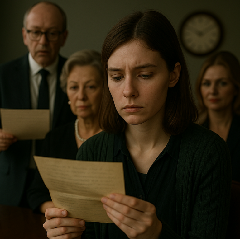 В приёмной пахло кофе и лаком. За столом сидели все: дядя Павел — сухой, с холодной складкой у губ; тётя Рая — в жемчугах и с усталым взглядом; мачеха Инна — молодящаяся, с нарисованной улыбкой. Рядом сестра по отцу, Кира, безразлично листала экран телефона.
