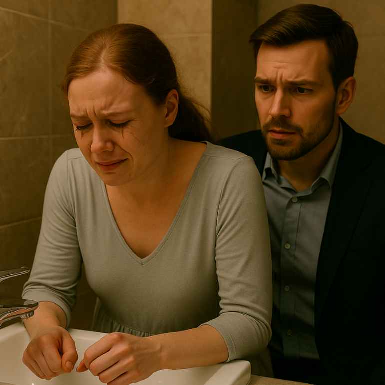 Екатерина застыла с ложкой в руке, словно превратившись в хрупкую статую из стыда и неверия. Кусочек сыра, аккуратно зажатый между пальцами, так и не долетел до тарелки. Она, вся лёгкая и прозрачная, будто соткана из инея, сидела напротив мужа и ощущала, как десятки взглядов — жалостливых, испуганных, укоряющих — впиваются в неё. Сердце подступило к горлу, дыхание стало рваным.