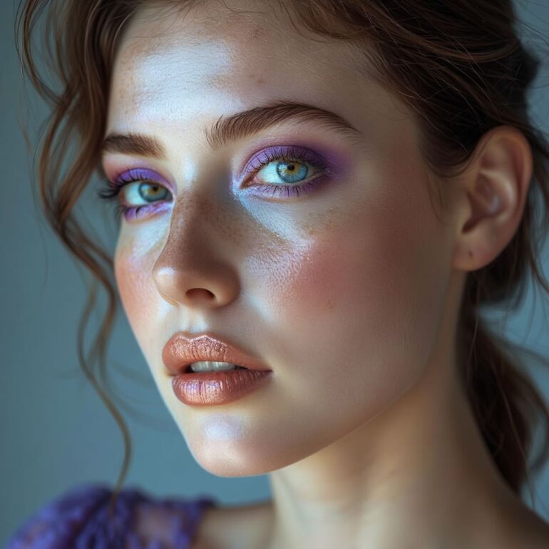 Один из нежных оттенков, который украсит и блондинок, и брюнеток, и рыжеволосых, – холодный дуэт сиреневого и перламутрового блеска.