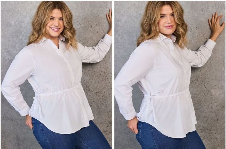 Если вам не хочется учиться застёгивать пуговицы асимметрично, можно выбрать модель с уже готовым дизайнерским решением. Например, рубашка нежного голубого цвета со съёмной баской станет отличным вариантом.