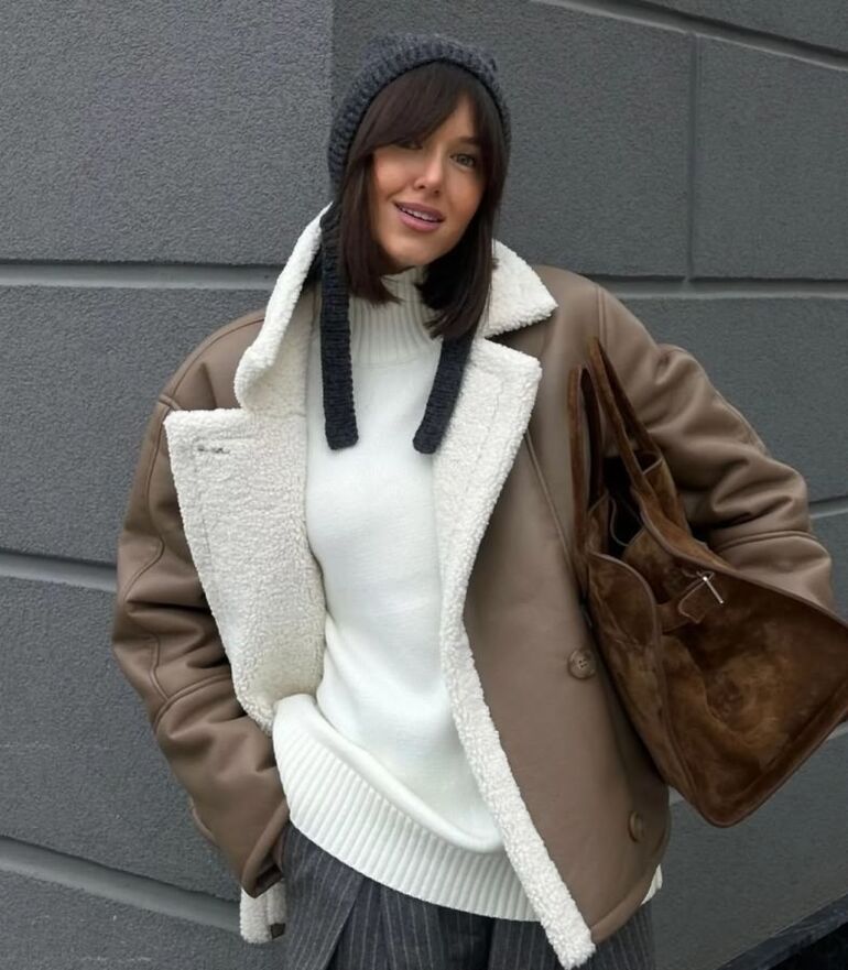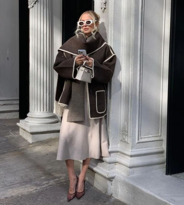 Альтернатива белому — бежевый. Вместе с шоколадным он создает нежный и женственный образ, который окутает вас уютом в прохладные осенние дни.