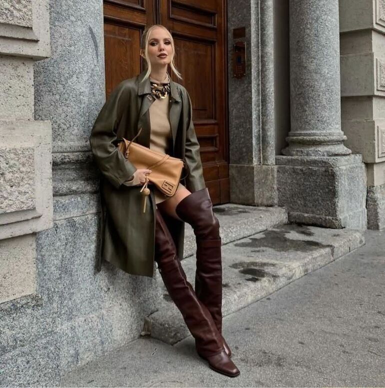 Это могут быть как темные, приглушенные оттенки, так и свежий фисташковый или оливковый. В любом случае, такое естественное сочетание сделает ваш осенне-зимний образ интересным и гармоничным.