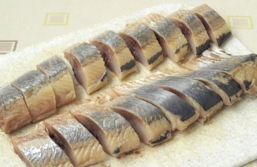 Сельдь освободить от головы и хребта, удалить внутренности и крупные кости. Нарезать порционными кусочками.