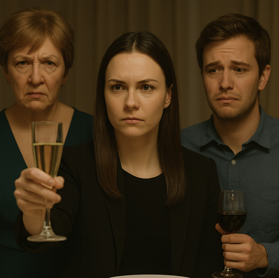 В помещении нависла тяжёлая тишина. Глаза гостей метались куда угодно — лишь бы не на Марину и не на Валентину. Свекровь покраснела. Марина не шелохнулась. Внутри её было не стыдно — холодно и даже светло. Будто всё вдруг стало предельно ясно.