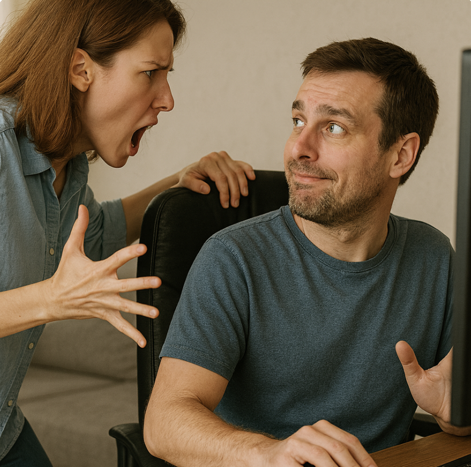 — Ого! Любимая, подожди! — Вадим нервно усмехнулся, пытаясь перевести всё в шутку. — Зачем такие драматичные манёвры? Я же тихо сижу, никому не мешаю!