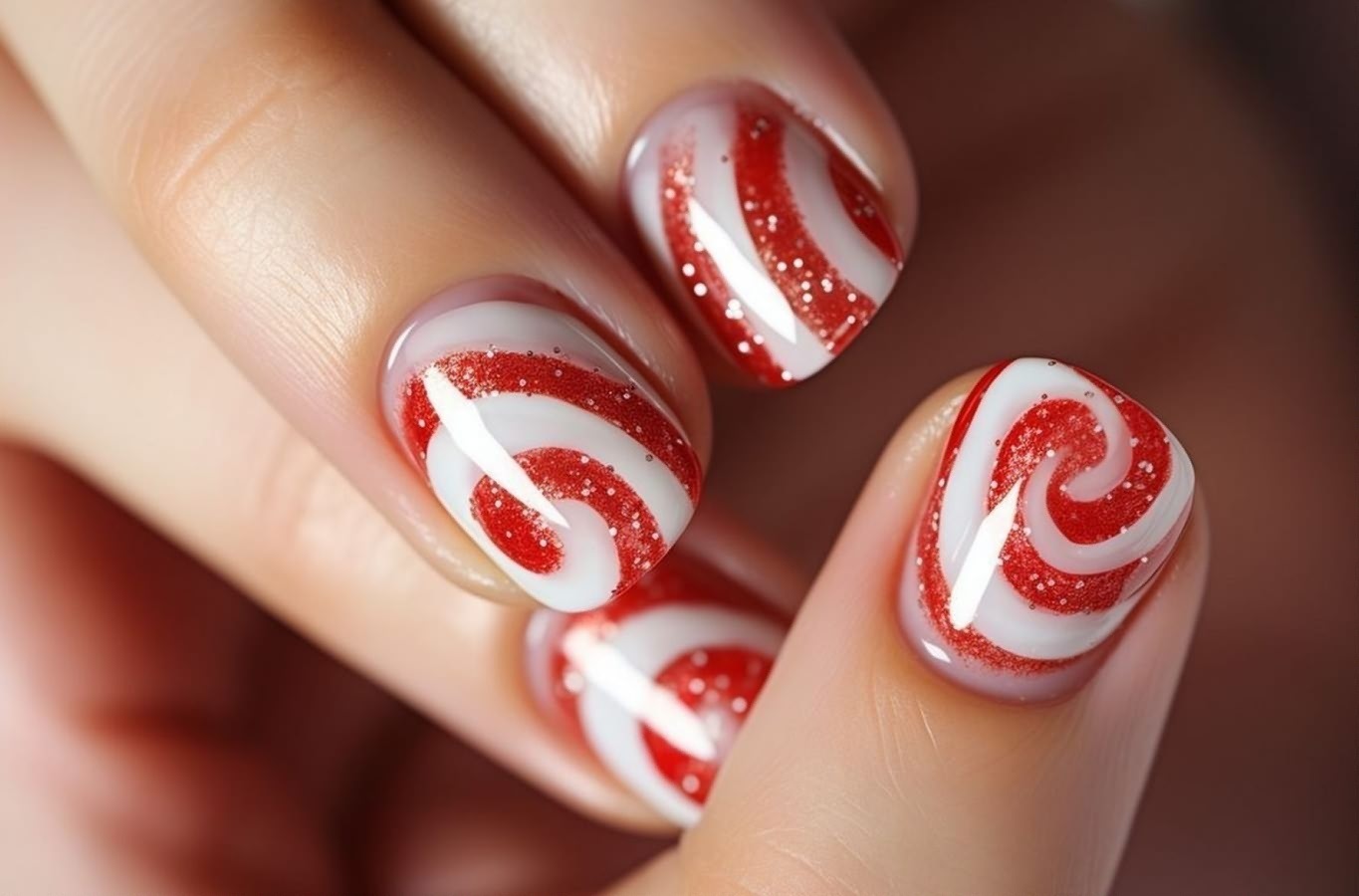 Техника создания разводов продолжает оставаться популярной в нейл-арте уже несколько сезонов подряд. На Рождество эти узоры можно эффектно дополнить блёстками — они могут быть крупными или мелкими, частыми или редкими, выбор за вами.