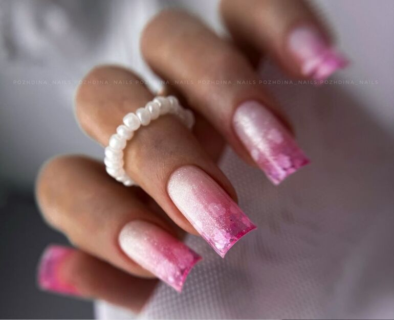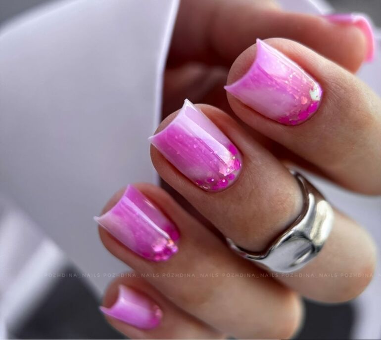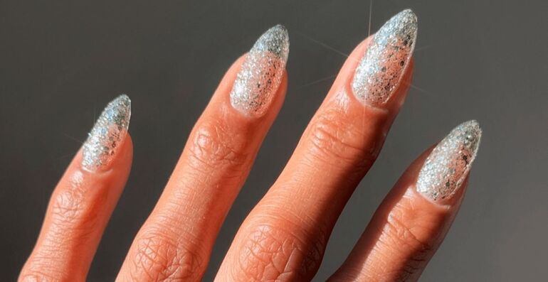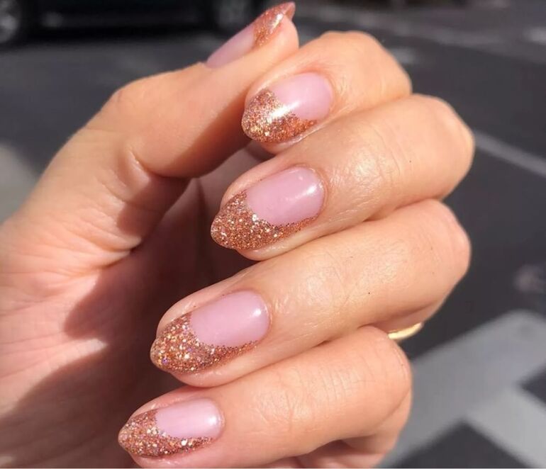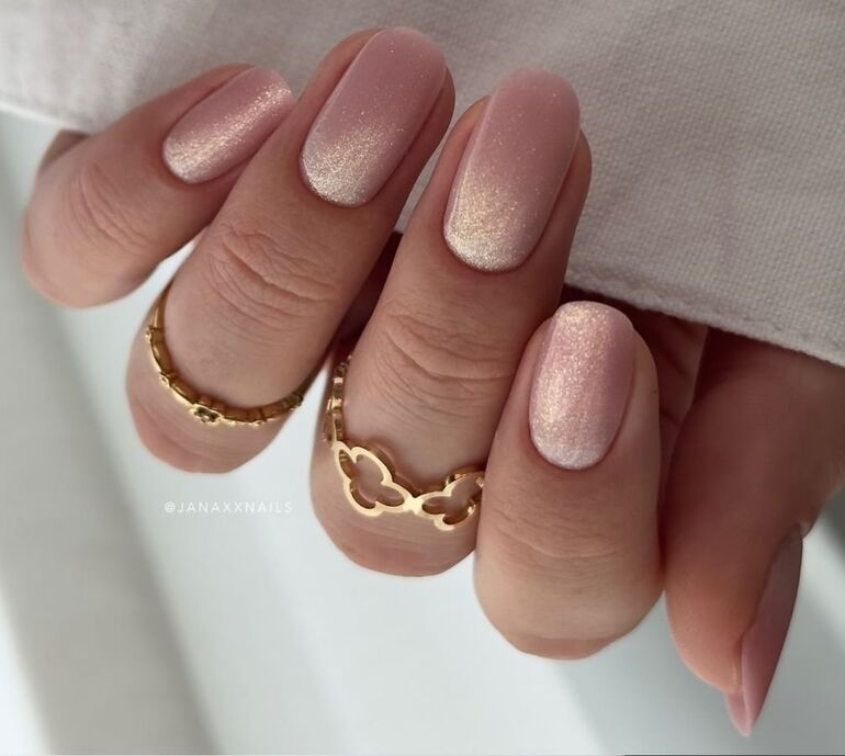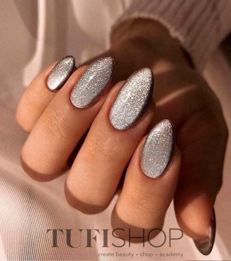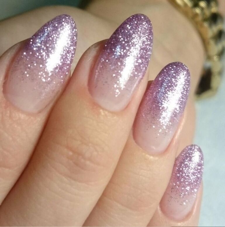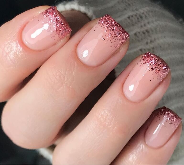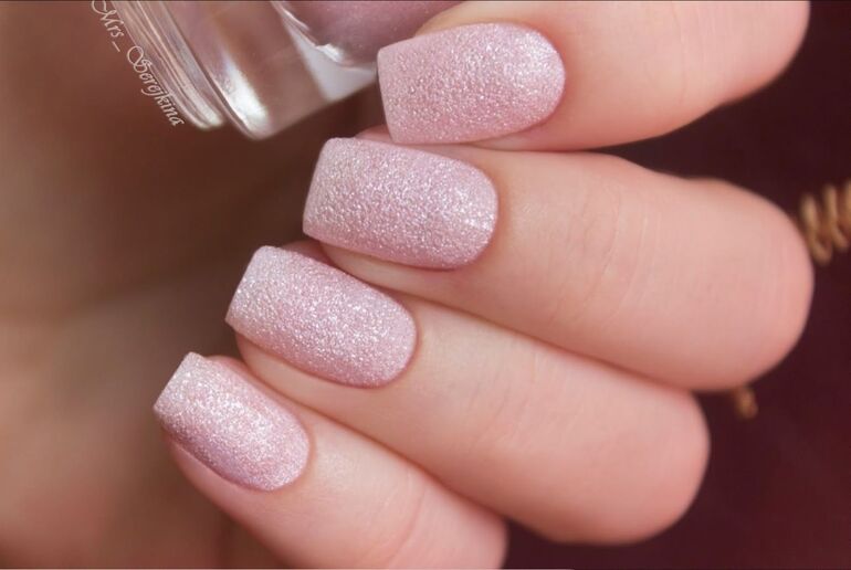 Мелкие блёстки выглядят элегантно и лаконично, не привлекая излишнего внимания, в отличие от крупного глиттера. Поэтому они подходят для всех. Достаточно выбрать лак с мелким шиммером, чтобы повторить маникюр в домашних условиях. Можно использовать любой оттенок, который вам нравится, и покрыть его лаком с блёстками.