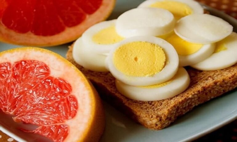 Для этого она выбирает рацион из двух продуктов: 5 вареных яичных белков и 5 грейпфрутов. Эти продукты нужно разделить на 10 приемов пищи, съедая по половине белка и половине грейпфрута за один раз.