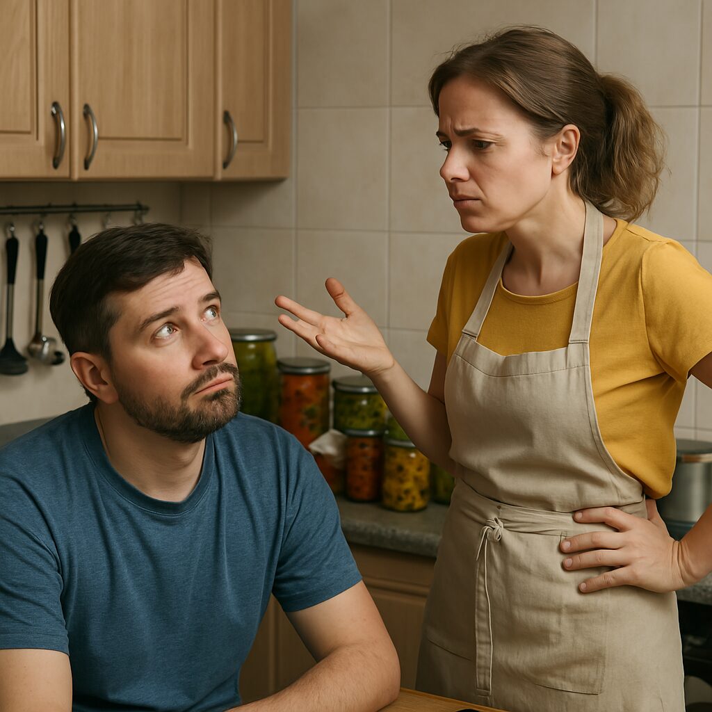 -Кать, ты чего вдруг вызверилась?- растерянно спросил Борис,- ты же всегда готовила эти закатки и ничего, не возмущалась? А что вдруг случилось?