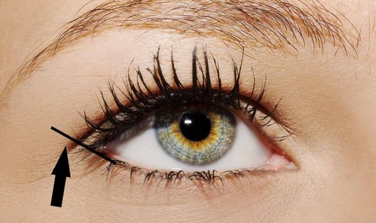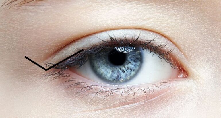От внутреннего уголка глаза аккуратно проведите линию к внешнему уголку, держа ее близко к линии ресниц.
